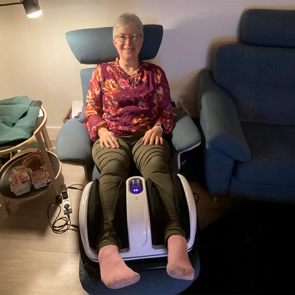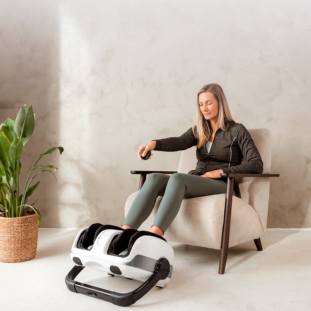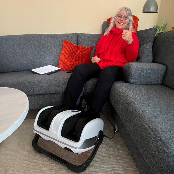 I princippet kan alle bruge vores fodmassager, men det er vigtigt at beholde strømper og bukser på, når man bruger den. Den rullende massage i kombination med varme kan være så intens, specielt på lægmusklen, at friktionen på bar hud kan forårsage mindre brændmærker.